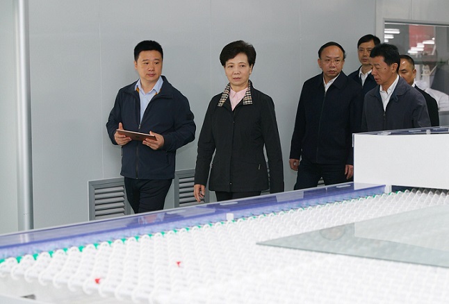 谌贻琴在贵州达沃斯光电有限公司生产车间考察。杜朋城 摄