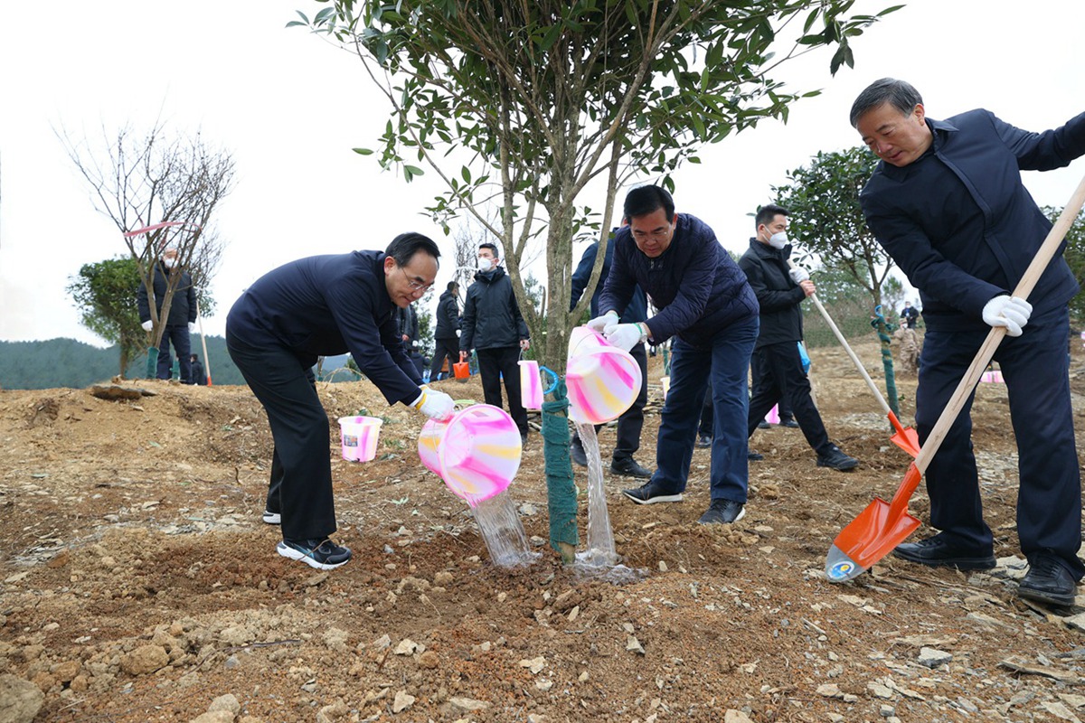 徐麟强调,今年是春节后上班第一天举行五级干部义务植树活动的第9年,要坚持不懈、久久为功,持续深化绿色贵州建设。要坚持植树造林,不断厚植高质量发展的底色,坚持走生态优先、绿色发展之路,不断做好绿水青山就是金山银山这篇大文章,为贵州高质量发展和现代化建设培育绿色新动能、谱写绿色新篇章。要坚持植树造林,不断提升高品质生活的成色,积极促进城乡造绿、增绿、扩绿、护绿,让“推窗见绿、出门见景”成为生活标配,不断提升人民群众的绿色获得感、生态幸福感。要坚持植树造林,不断增添高水平生态的亮色,各级干部要带头参与、率先垂范,带动更多群众参与植树造林,共同努力让贵州的天更蓝、山更绿、水更清,让贵州优良生态环境的名片更加靓丽。