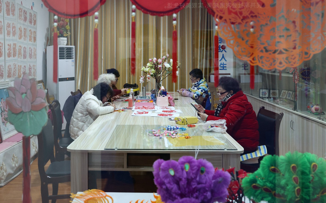 乌江恬苑社区党群服务中心内,居民们正在开展剪纸活动。 杜朋城 林民 摄
