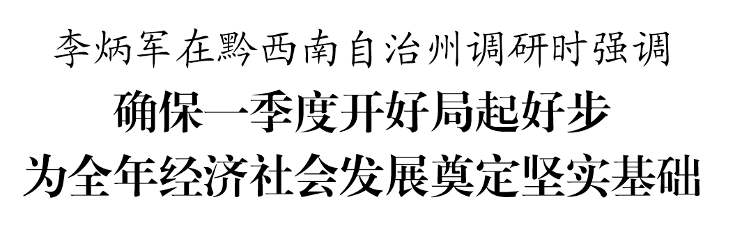 2月13日至14日,省委副书记、省长李炳军到黔西南布依族苗族自治州普安县、兴仁市、贞丰县调研春耕备耕、项目建设等工作。他强调,要深入学习贯彻党的二十大精神和习近平总书记视察贵州重要讲话精神,全面落实中央和省委、省政府决策部署,扎实抓好一季度各项重点工作,确保开好局、起好步,为全年经济运行整体好转、高质量发展实现新跨越奠定坚实基础。