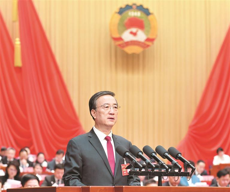 省政协主席赵永清代表政协第十三届贵州省委员会常务委员会作工作报告。 贵州日报天眼新闻记者 张丽 摄