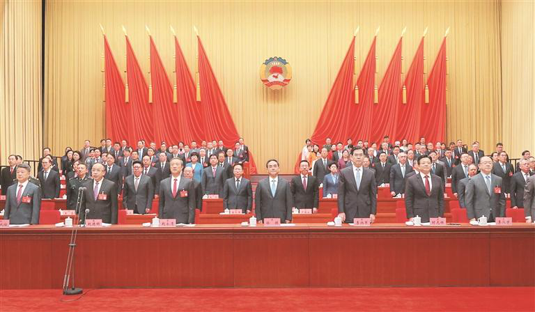 大会开幕,全体起立,高唱中华人民共和国国歌。 贵州日报天眼新闻记者 杜朋城 摄