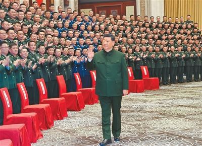 当天下午,习近平亲切接见了驻乌鲁木齐部队上校以上领导干部和部分基层先进模范、文职人员,代表党中央和中央军委向驻新疆部队全体官兵致以诚挚问候,并同大家合影留念。