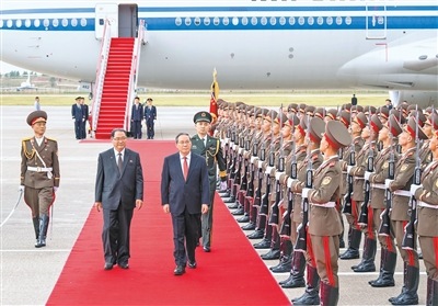 李强表示,中朝两国是山水相连的社会主义邻邦,有着深厚的传统友谊。近年来,在习近平总书记和金正恩总书记战略引领和亲自推动下,中朝关系焕发出新的蓬勃生机。今年9月,金正恩总书记赴华出席纪念中国人民抗日战争暨世界反法西斯战争胜利80周年活动,两党两国最高领导人再度成功会晤,达成一系列重要共识,为中朝关系发展把舵定向。