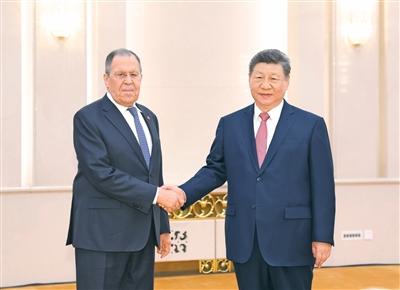 新华社北京4月15日电 (记者冯歆然)4月15日上午,国家主席习近平在北京人民大会堂会见俄罗斯外长拉夫罗夫。